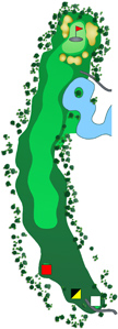 Hier kann der Driver auch gerne mal im Bag bleiben. Mit einem kleinen Holz oder einem Eisen sollte der Ball hier auf die linke Fairwayseite platziert werden. Ist dies gelungen wird der Spieler mit einer freien Sicht auf dieses äußerst anspruchsvolle und durch zwei Ebenen charakterisierte Grün belohnt.