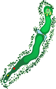 Ein breites Fairway ohne Bunker liegt vor Ihnen, eine gute Voraussetzungen um einen lan-gen Abschlag zu platzieren. Schwieriger wird der zweite Schlag, wieder kreuzt der schon bekannte Bachlauf die Spielbahn. Das 1.462 m² große Grün wird von drei Topfbunkern verteidigt, lange Putts sind hier keine Seltenheit. | |||||||||||||||||||||||||||||||||||||||||||||||||||||||||||||||||||||||||||||
